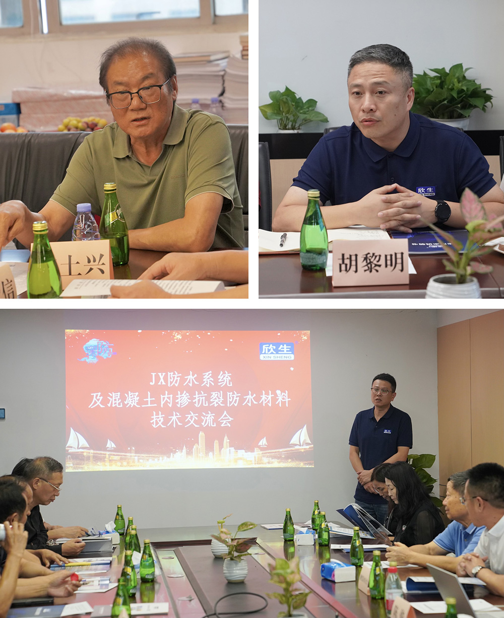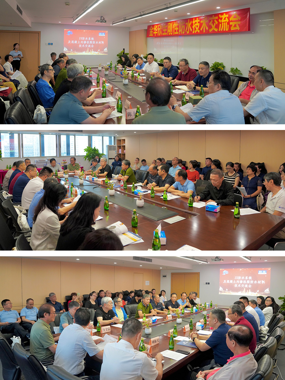 深圳市防水行業(yè)協(xié)會瞿培華會長主持交流會并講話;金華欣生陳土興董事長致歡迎辭、胡黎明副總經理介紹企業(yè)發(fā)展、陳俊總工技術報告,深圳防水專家團隊40余人參加活動。
